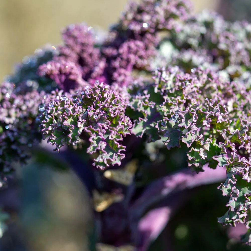 Grünkohl ‘Scarlet’ besticht durch seine violetten Blätter. Er ist sowohl eine Schönheit und Zierde im Beet, als auch eine Köstlichkeit auf dem Teller.