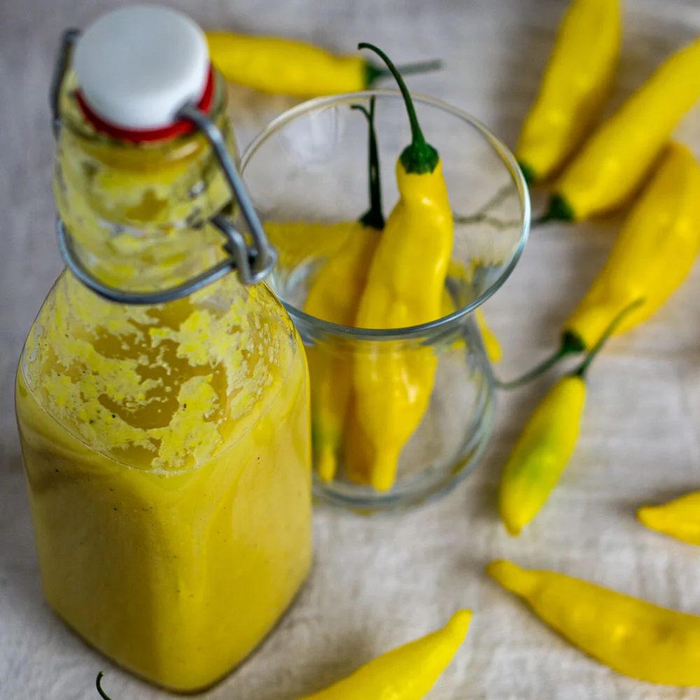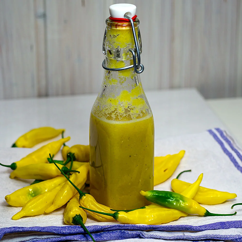 Kurz aufkochen und in saubere Flaschen oder Gläser abfüllen. Durch den Essig ist die Soße lange haltbar, geöffnet im Kühlschrank aufbewahren.
