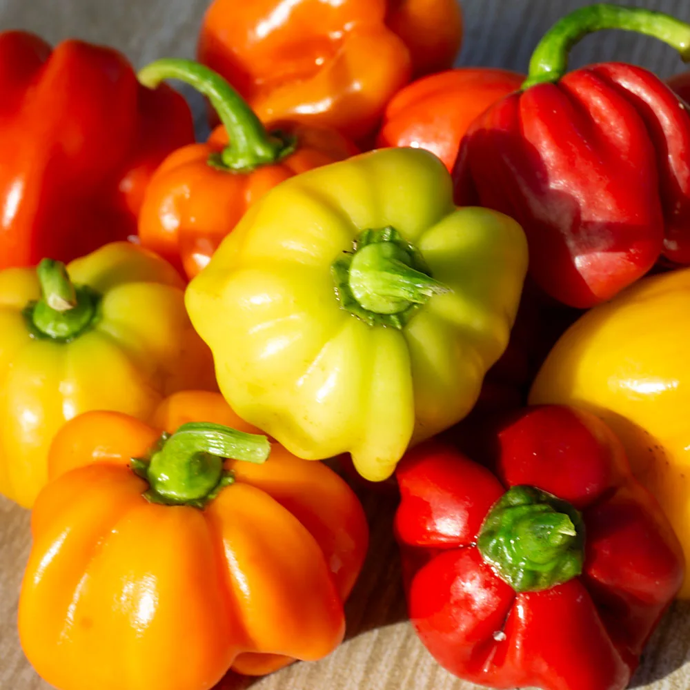 Scotch Bonnet ist eine der schärfsten Chili Sorten. Sie kommen aus der Karibik und verleihen Gerichten ein exotisches Flair.