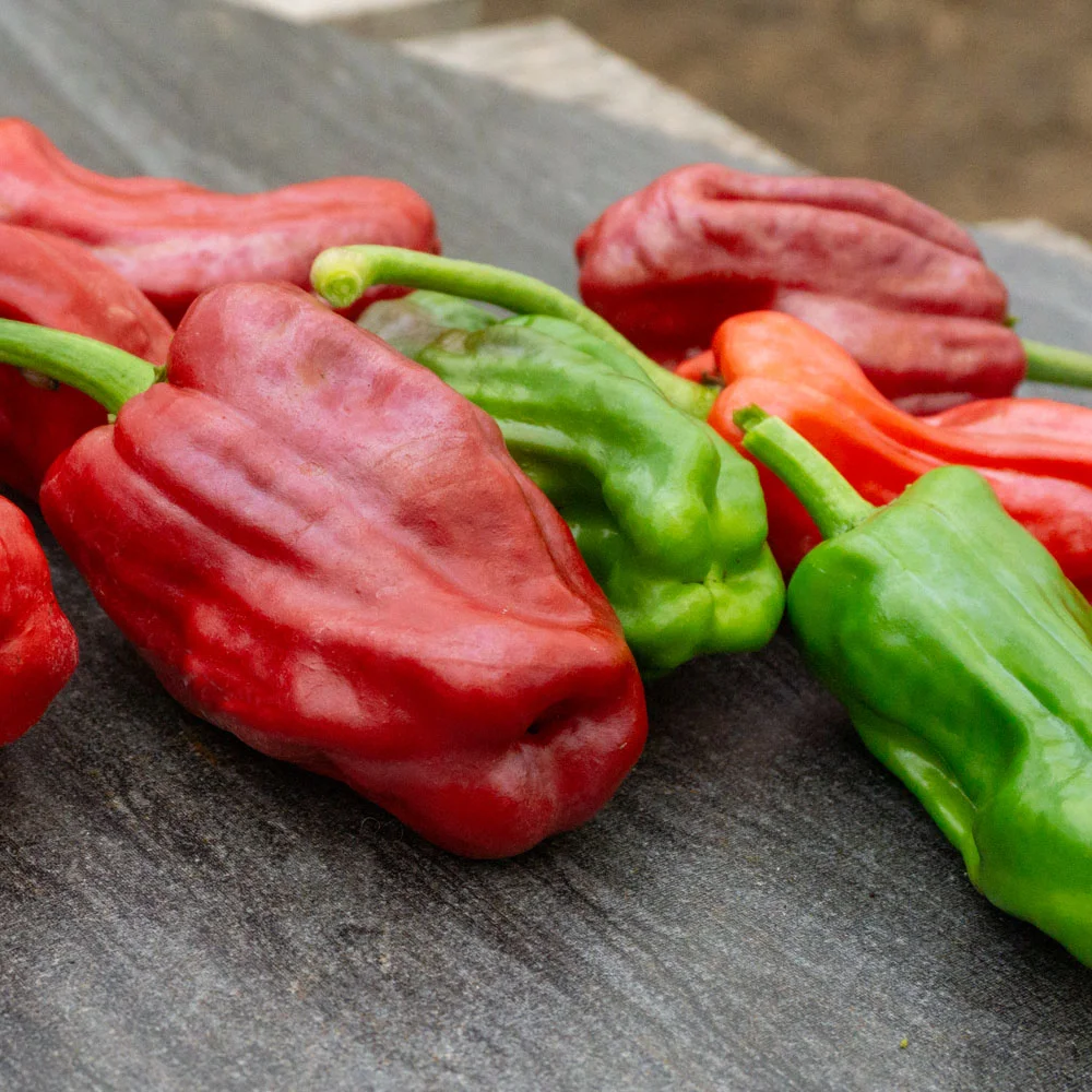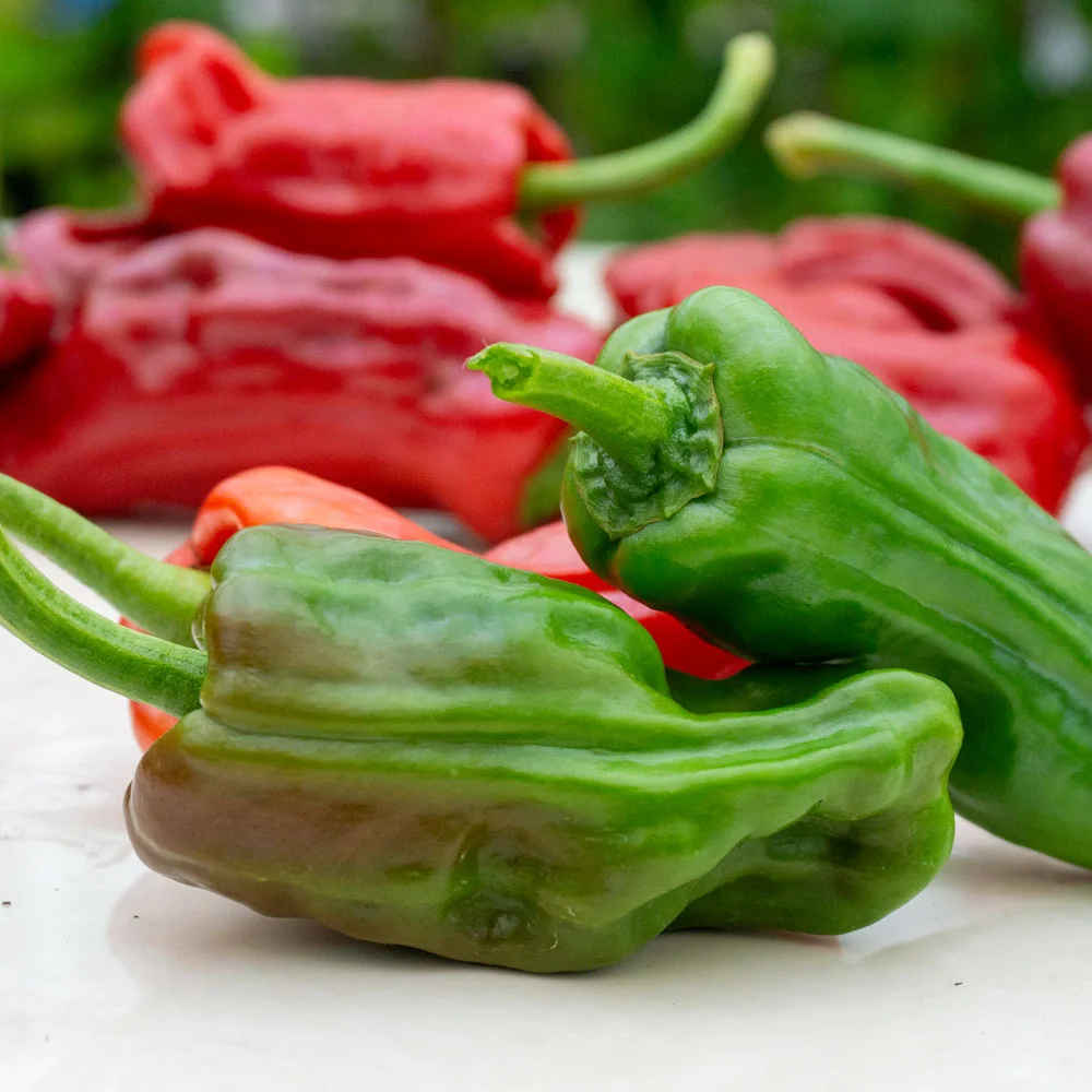 ‘Stavros’ ist eine griechische Peperoncini, die fast ohne Schärfe ist und sehr würzig schmeckt. Hauptsächlich wird sie eingelegt, schmeckt gegrillt aber auch sehr lecker.