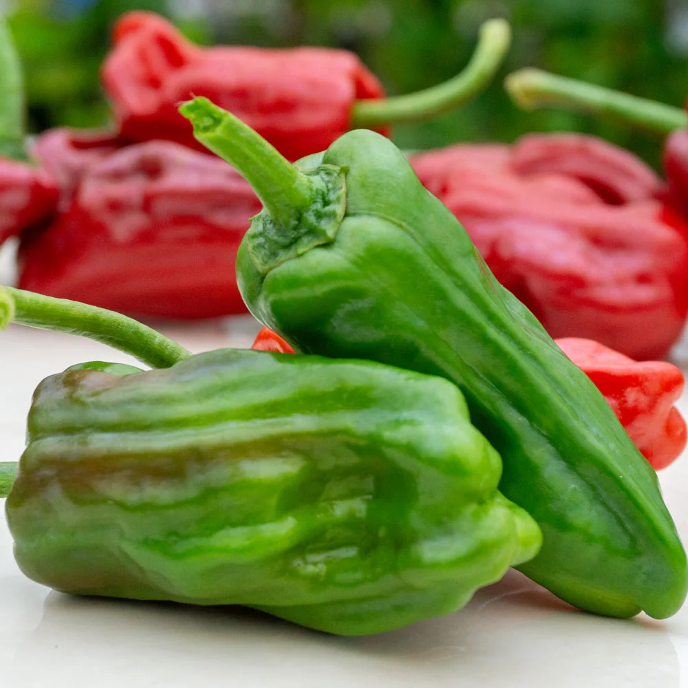 Die roten Früchte sind leicht süßlich-würzig, grüne Früchte etwas herber im Geschmack. Die grünen Schoten werden in Griechenland in Kräuteröl eingelegt und zu Schafskäse gereicht. Eine Konservierung in Öl ist sehr lecker, man kann die Schoten aber auch gut einfrieren.