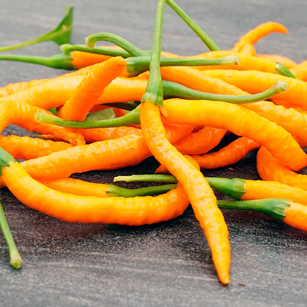 Thai Orange Hot ist eine sehr produktive Pflanze mit hohem Fruchtertrag. Sie gehört zu den beliebtesten Chilis in Thailand.