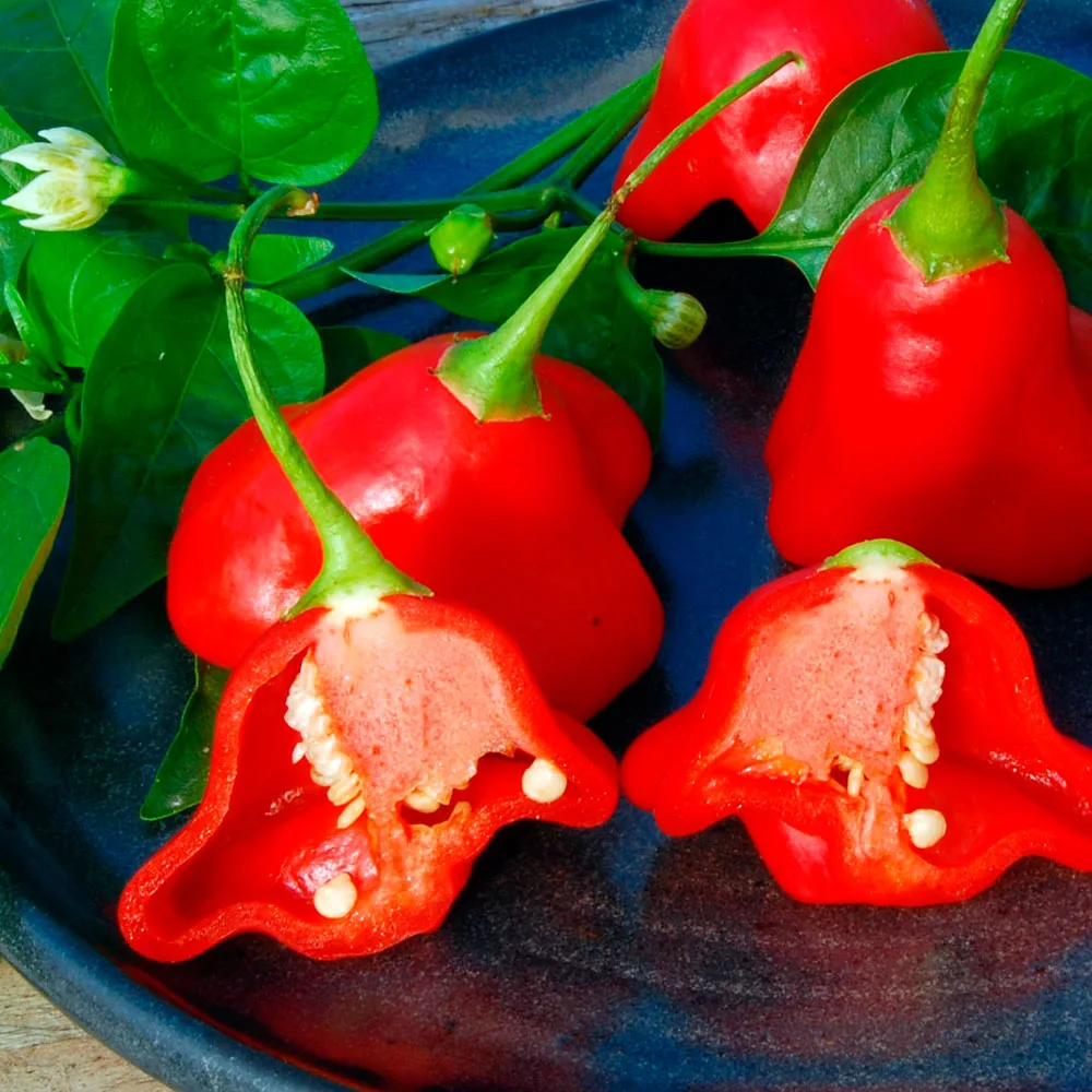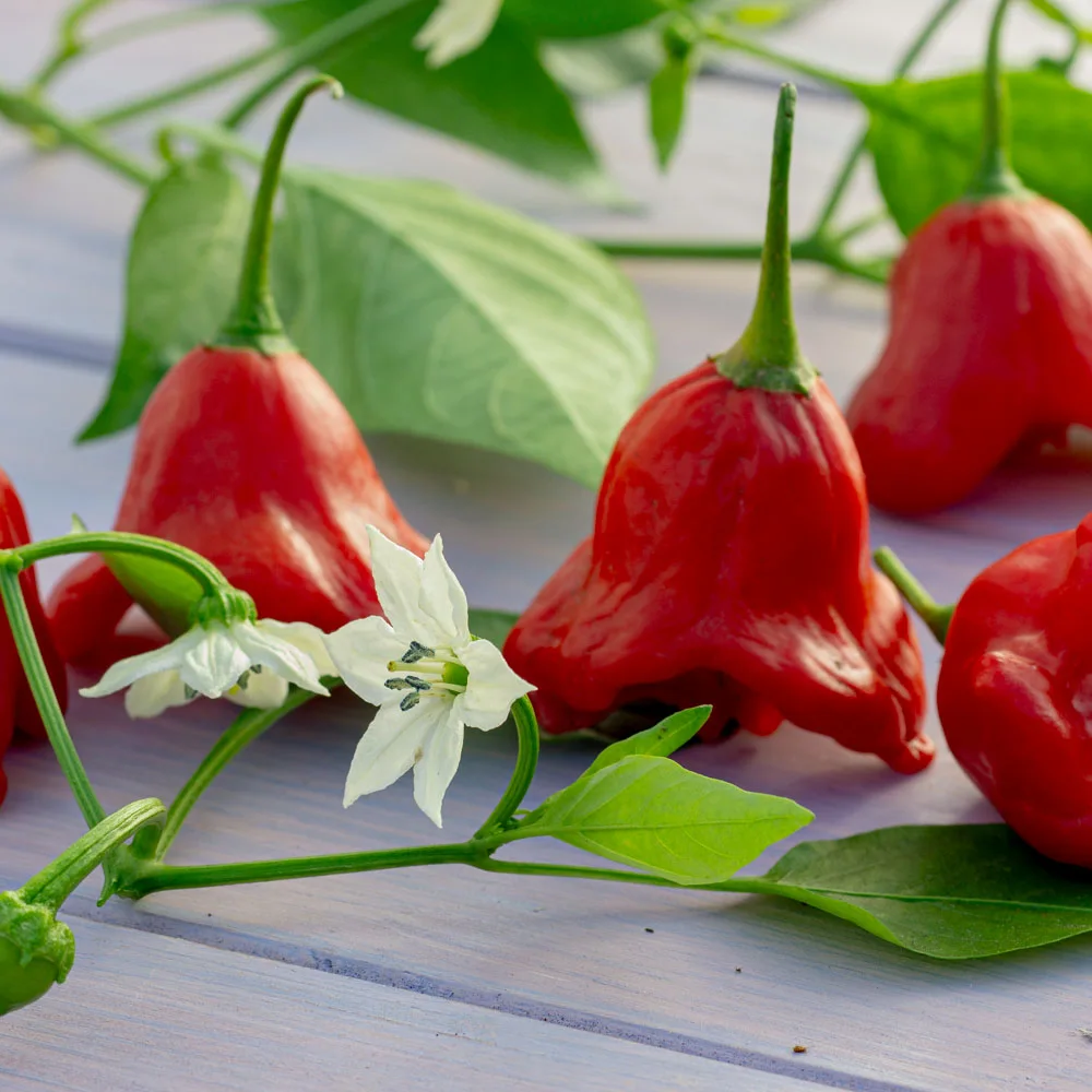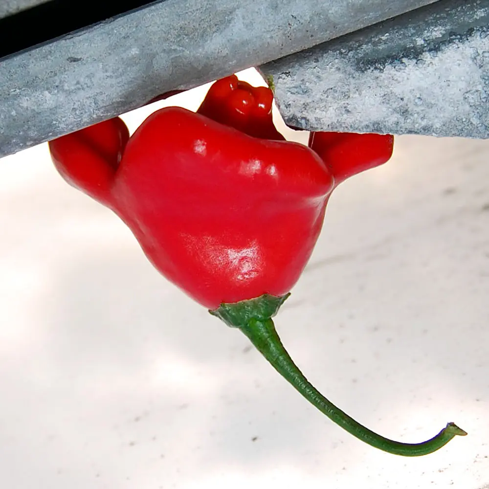 Die Früchte der Glockenchili sehen wirklich wie kleine, hellrote Glocken aus. Sie sind sehr standfest und daher gut zum Füllen geeignet, ohne das etwas herausläuft.