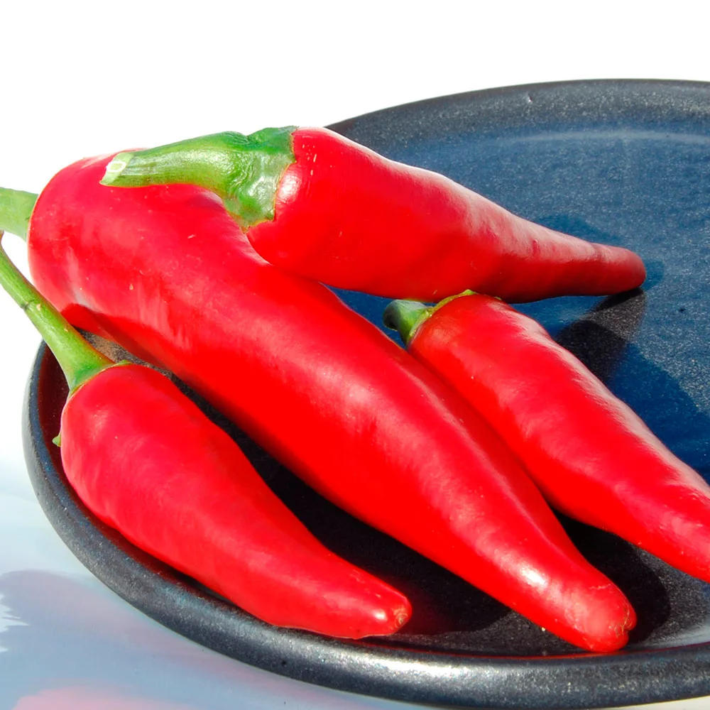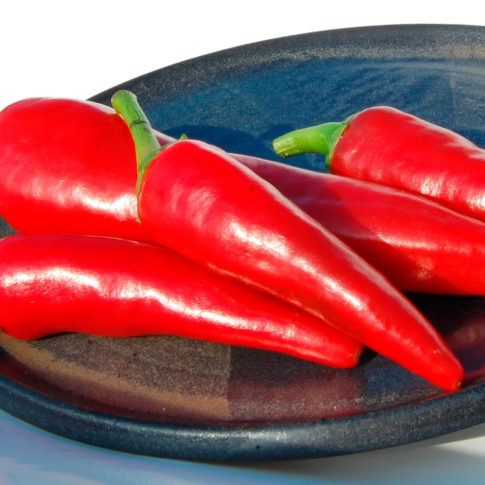 Im Garten ist diese robuste Chili gut anzubauen. Sie erreicht eine Höhe von einem Meter und wächst mit langen Trieben eher strauchig. Die länglichen roten Früchte werden 7-15 cm lang und hängen unter dem Laub. Zur besseren Reife kann man die oberen Blätter ab Ende August entfernen. Sie sind ab September zu ernten.