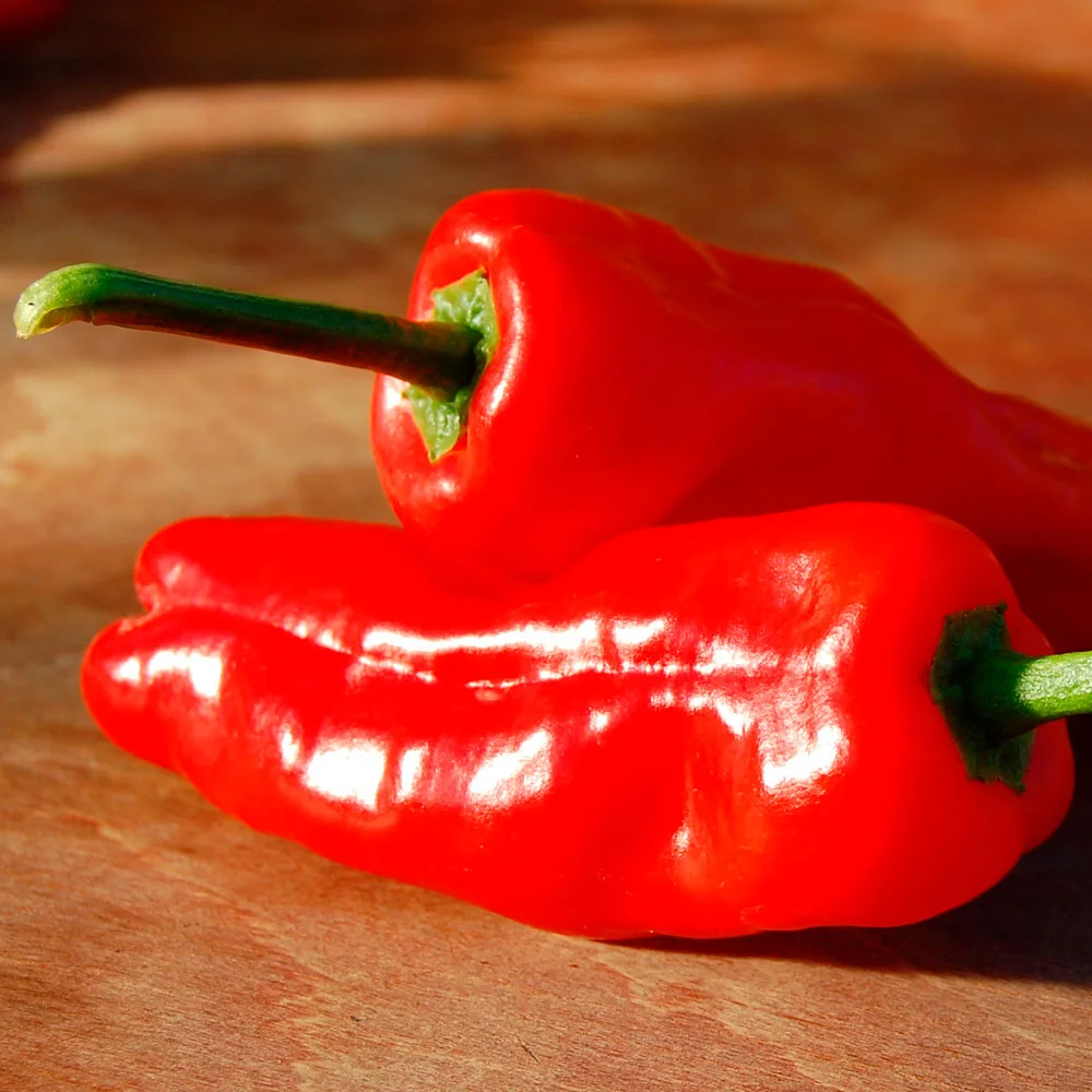 Pimientos de Padrón ist ein Chili von variabler Schärfe. Auch an einer Pflanze können die Früchte von mild bis mittelscharf tendieren. Es findet ganz bewußt keine Selektion statt, damit dieser unregelmäßige Schärfegrad erhalten bleibt.