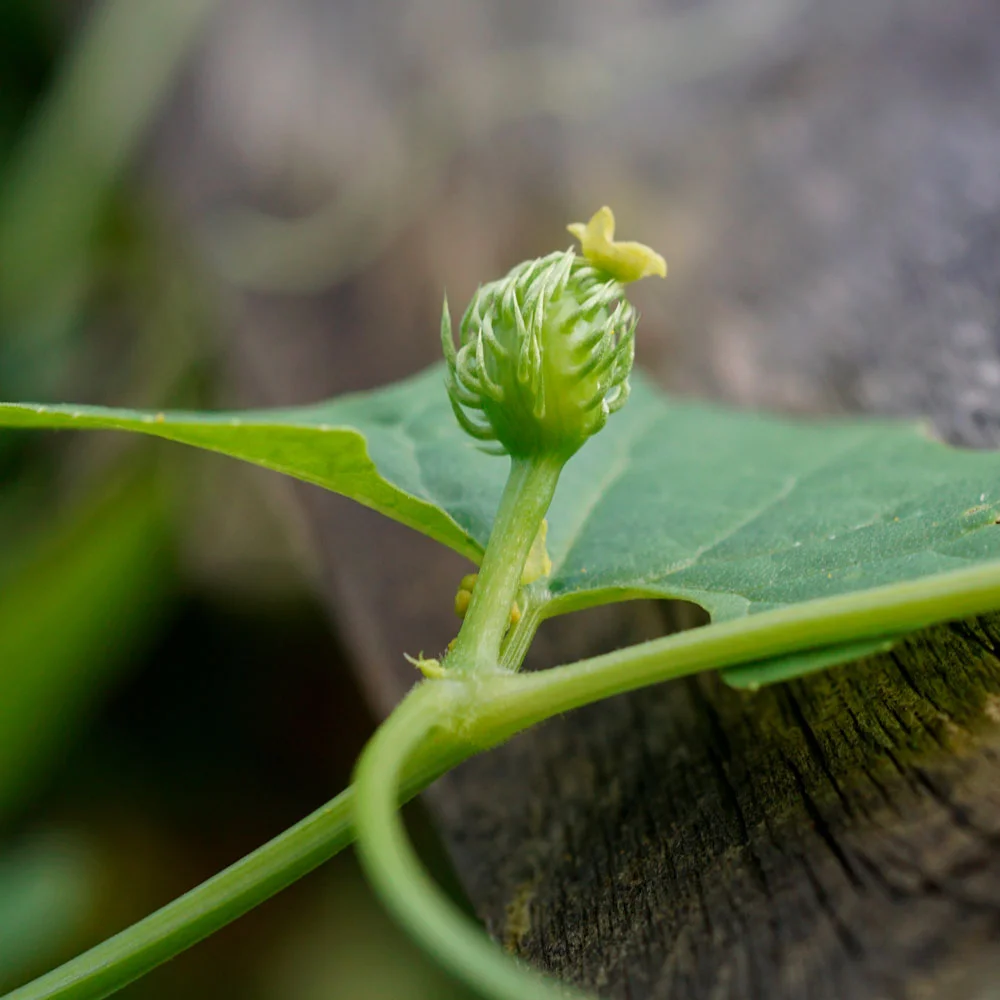 Nach den Eisheiligen kann sie in ein sonniges Beet oder auch im Kübel auf einem Südbalkon gepflanzt werden. Sie benötigt einen nahrhaften, feuchten Boden und eine Rankhilfe. Das können Drähte, Stangen oder auch Gehölze sein. Die Pflanze ist da sehr anpassungsfähig. Bis Juni hat sie bereits einen Meter an Höhe gewonnen. Nach der Sonnenwende entwickeln sich männlich und weibliche Blüten an der Pflanze. Die Befruchtung findet durch Insekten statt. Es ist also ratsam, in der Nähe einige stark duftende Nektarlieferanten, wie zum Beispiel Lavendel, stehen zu haben, die Insekten anlocken.