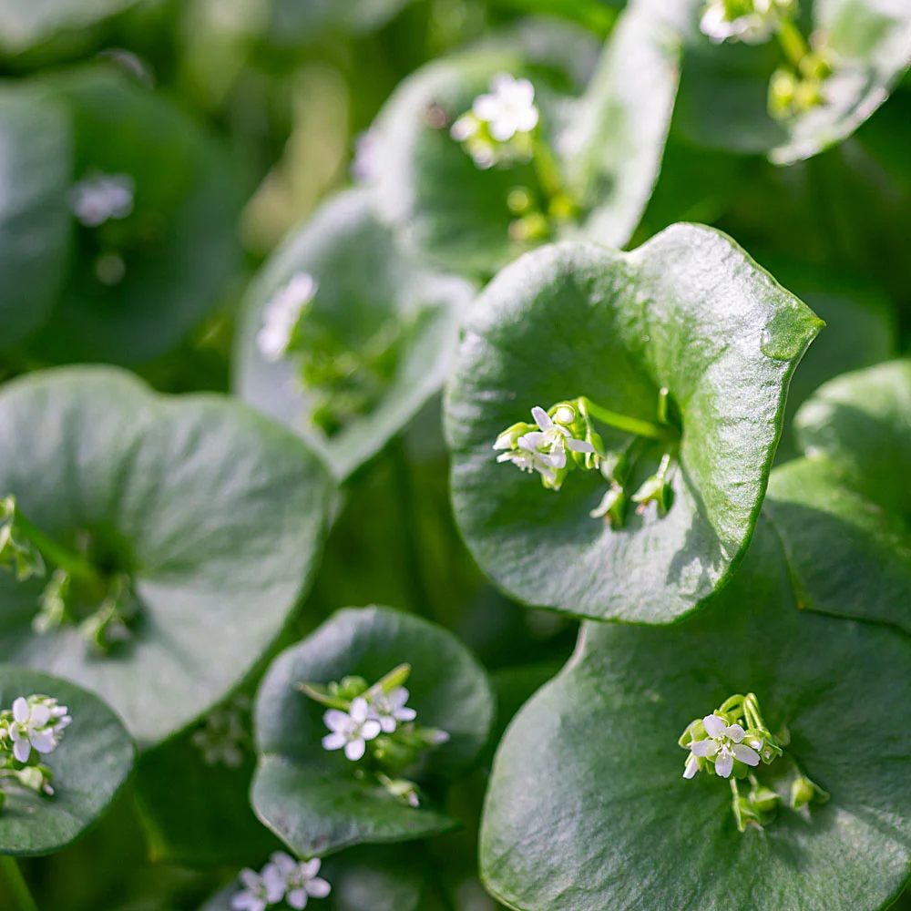 Synonyme: Montia perfoliata, Winterportulak, Tellerkraut, Kubaspinat, Winterpostelein