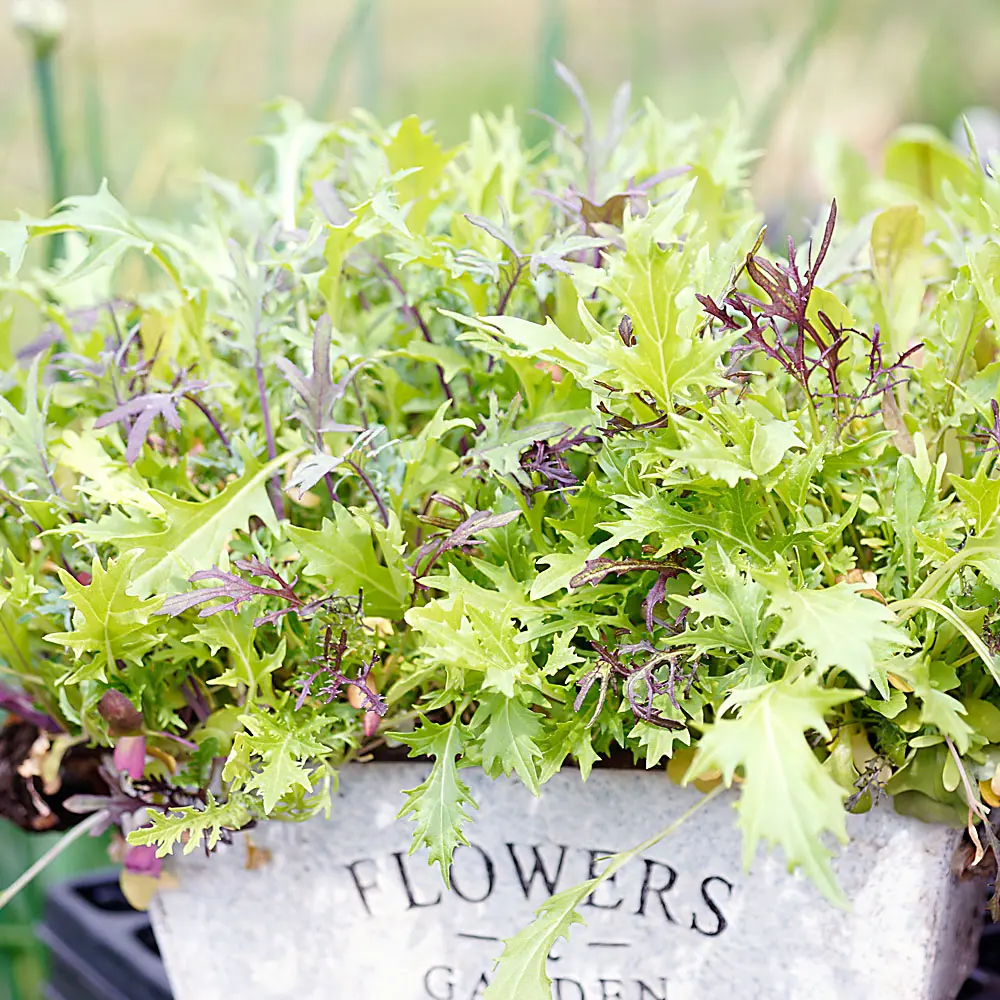 Die Blätter können regelmäßig geerntet werden. Die jungen Babyblätter schneidet man am besten bis auf 2 cm herunter. Nach einiger Zeit wachsen sie nach. Diese Mischung ist besonders für das Frühjahr und den Herbst geeignet.
