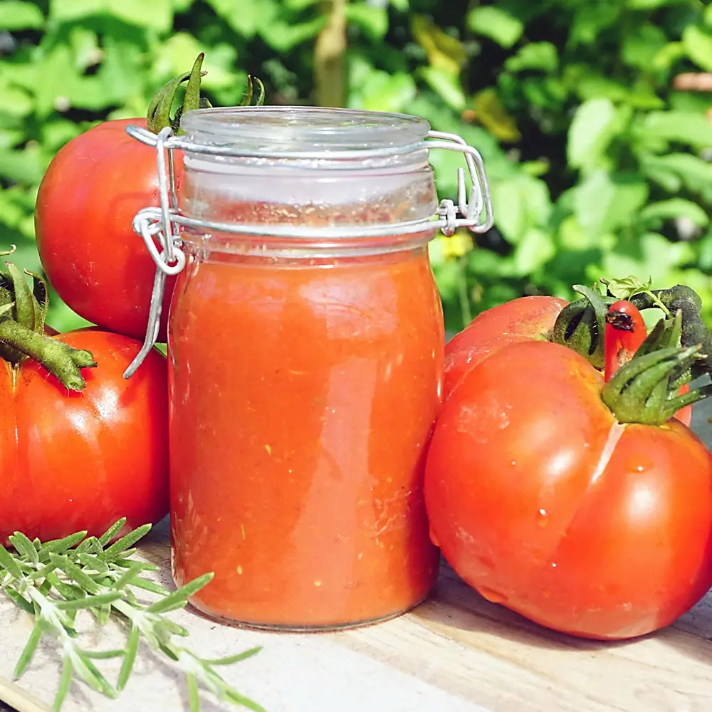 ‘Amish Paste’ eignet sich hervorragend zum Herstellen von sämigen Soßen und Suppen. Ähnlich wie ‘San Marzano’ ist diese robuste Sorte auch gut zum Einkochen zu verwenden.