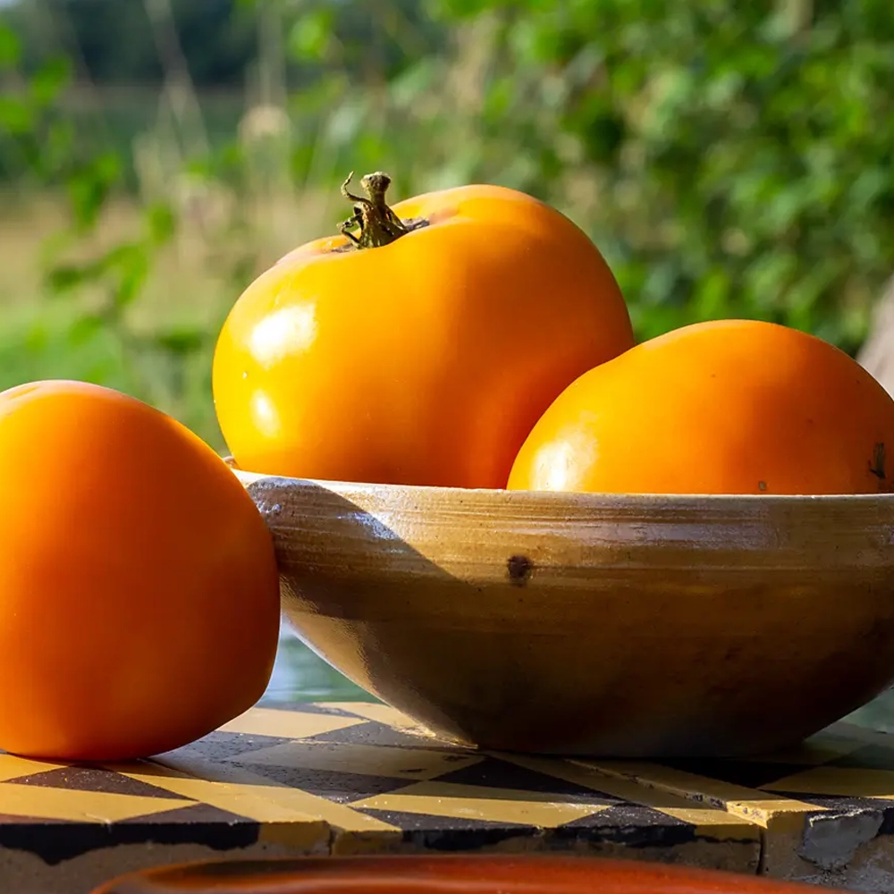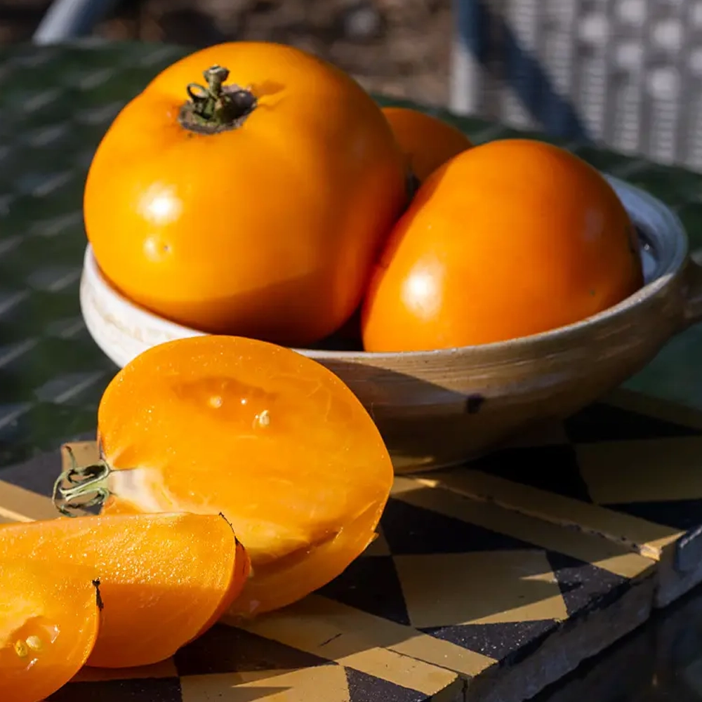 Eine leuchtend orange Fleischtomate aus Neuseeland.