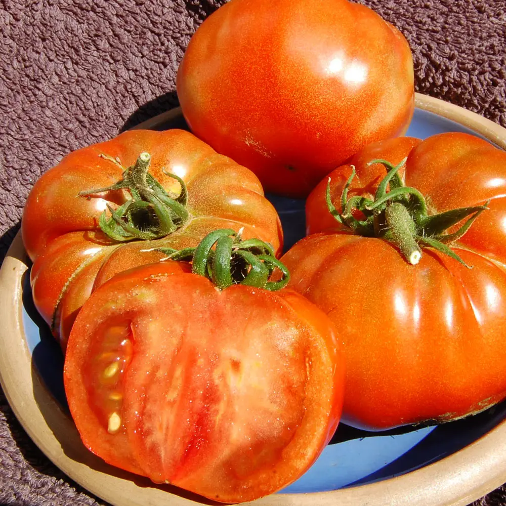 ‘Mr. Brown’ ist eine äußerst aromatische Fleischtomate, die eine Größe von etwa 10 cm erreicht und damit zu den kleineren Fleischtomaten zählt.