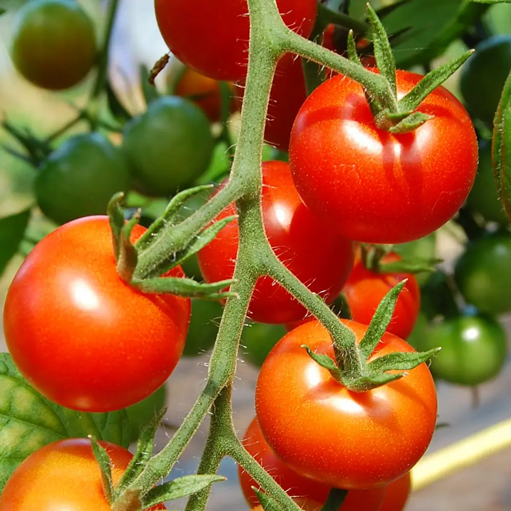 ‘Gardeners Delight’ ist von hellroter Farbe und an den Rispen sitzen etwa 16 Früchte, die nacheinander abreifen. Sie reifen bereits ab Mitte Juli, sind gut lagerfähig und haben einen delikaten Geschmack. Die Pflanze wird etwa 2m hoch.