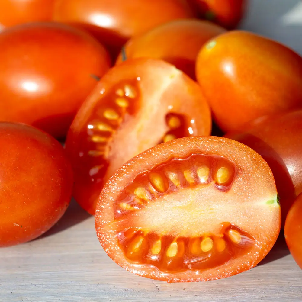 Eine kleine längliche Cocktailtomate aus der Schweiz.