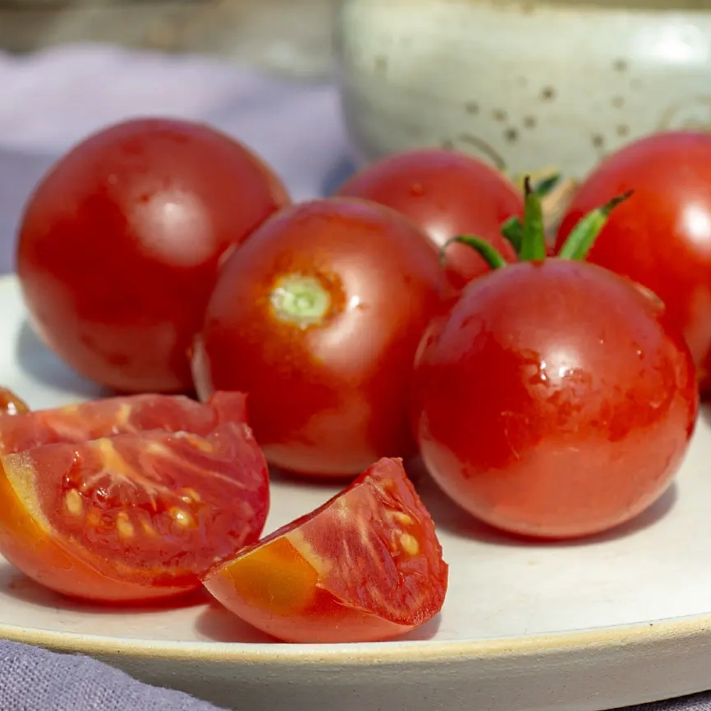 Die Tomate hat ein vorzüglichem Aroma. Das Fruchtfleisch ist saftig, Süße und Säure sind ausgewogen. Die Haut ist dünn, aber platzfest. Die ersten Früchte reifen bereits Anfang Juli. Sie haben einen Durchmesser von 4-5 cm. Eine typische Salattomate wie sie im Bilderbuch steht. Einfach nur lecker.