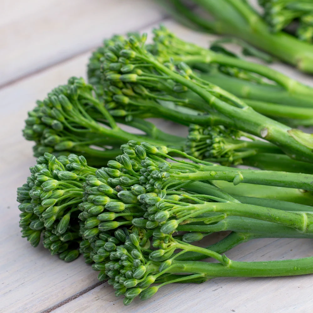 Wilder Brokkoli ist das ideale Herbstgemüse. Er wird einjährig kultiviert und wächst am besten in der kühleren Jahreszeit. Bei Temperaturen von 15- 20 °C fühlt sich die Pflanze wohl. Wilder Brokkoli erreicht eine Höhe von etwa 50 cm. Er bildet blattreiche Stängel, an denen sich im Oktober die Blüten bilden. Man erntet die zarten Stängel mit der noch geschlossenen Blütenknospen. Sie sehen wirklich wie Minibrokkoli aus.
