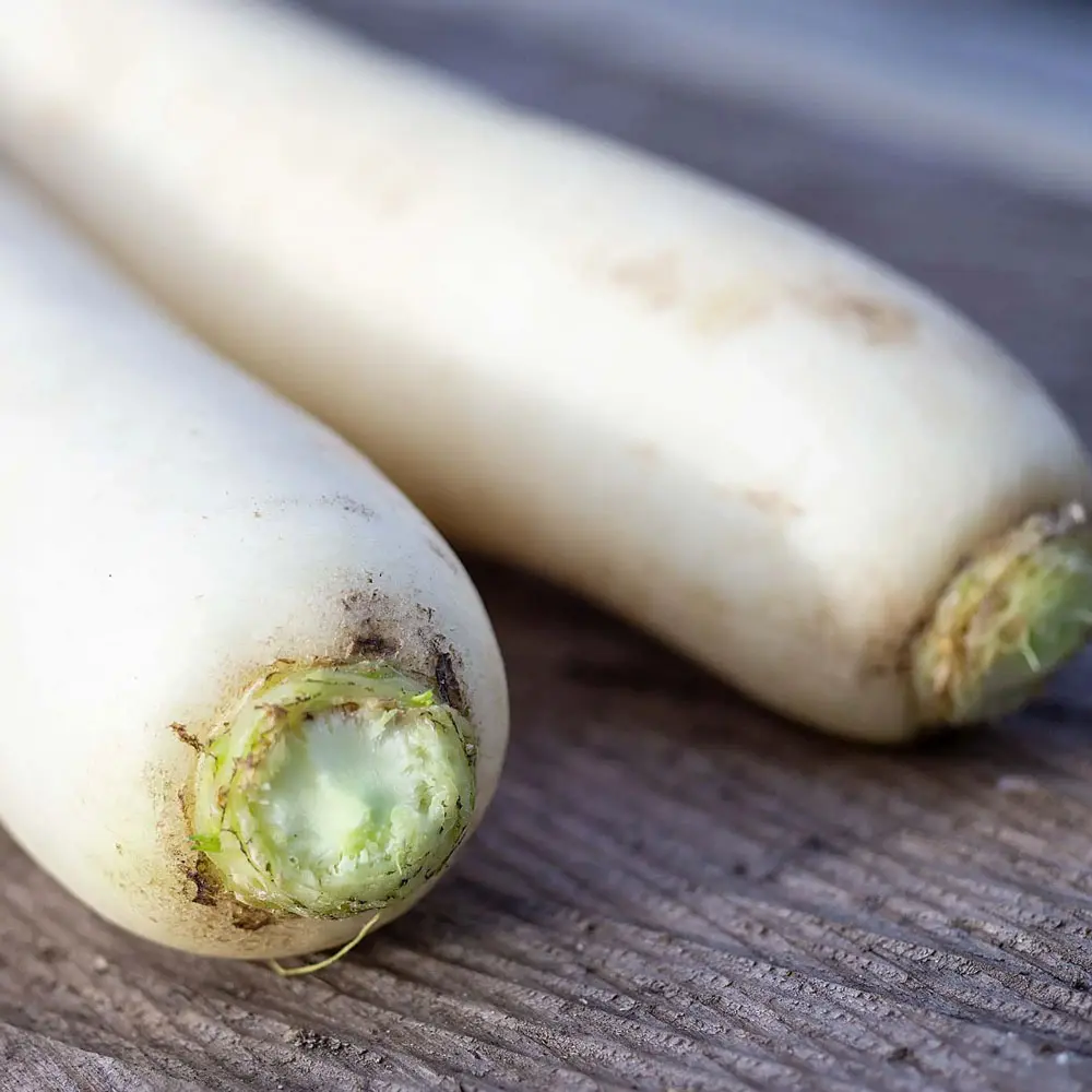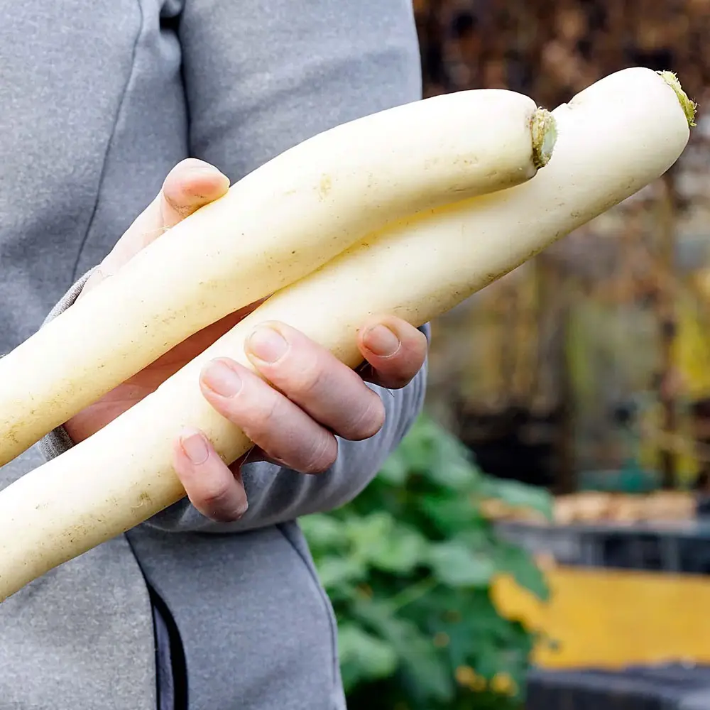 Daikon ‘Minowase’ ist ein mild schmeckender Riesenrettich aus Japan.