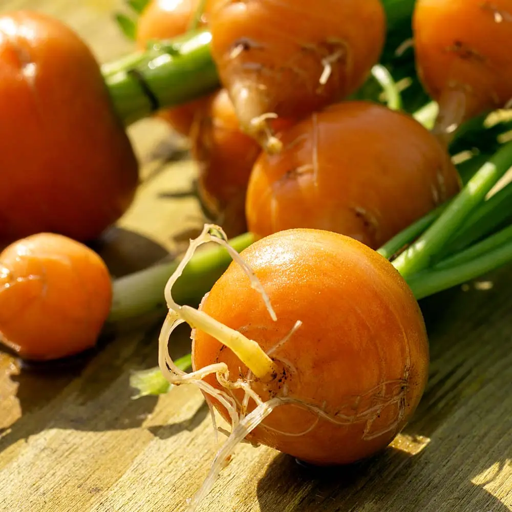 Die frühe Möhrensorte ‘Pariser Markt’ bringt kleine kugelige Möhrchen hervor, die ausgesprochen delikat sind.