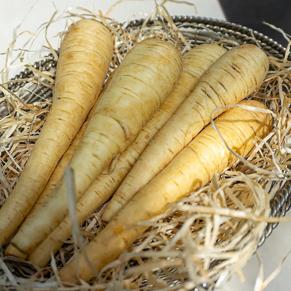 Pastinake ‘White Gem’ ist eine Züchtung aus Großbritannien, die einen süßlich-würzigen Geschmack hat. Sie kann roh, als Salat oder gekocht verwendet werden.