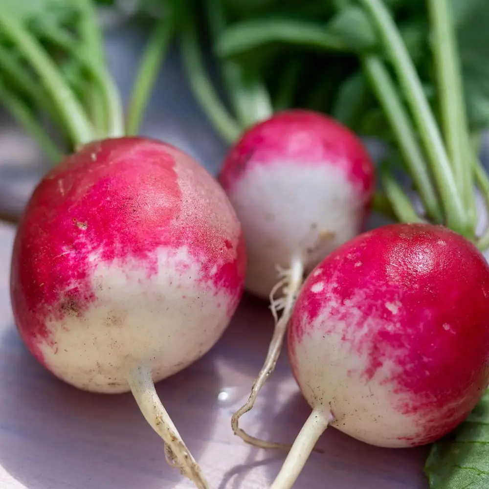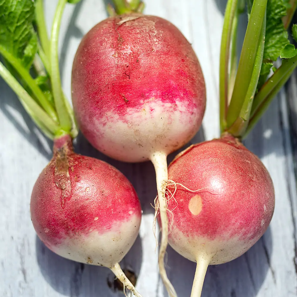 Die Knollen sind platzfest und neigen nicht zur Pelzigkeit. Ein leicht anzubauendes Sommerradieschen zum würzigen Naschen und Knabbern.