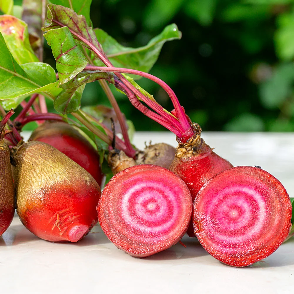 Die Ringelbete, wie sie auch genannt wird, kommt wie der Name vermuten lässt aus Italien, genauer gesagt aus der schönen Stadt Chioggia. Die Bete wird etwa 6 cm im Durchmesser und ist kugelrund. In feine Scheiben geschnitten, ist ‘Tonda di Chioggia’ eine dekorative Rohkost. Die jungen Blätter können frischen Salaten beigegeben werden.