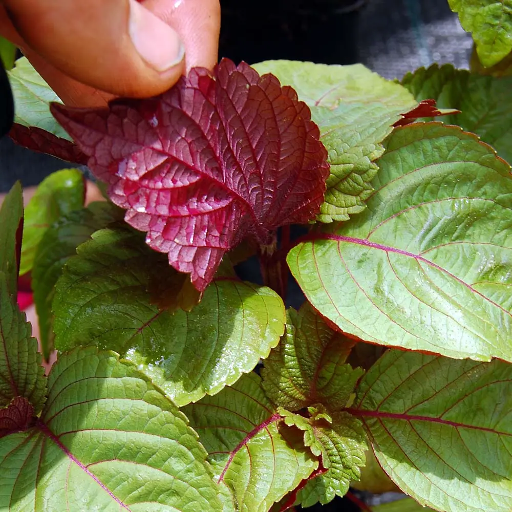 Perilla ist eine wärme- und feuchtigkeitsliebende Pflanze, die bei uns auch im Sommer im Garten wächst. Sie braucht dort einen sonnigen bis halbschattigen Platz, der nie austrocknet. Durch ihr schnelles Wachstum kann man die Blätter bereits im Juni ernten. Bis zum Frost liefert sie ein ungewöhnliches Blattgewürz, welches auch gut zu traditionellen deutschen Gerichten passt.