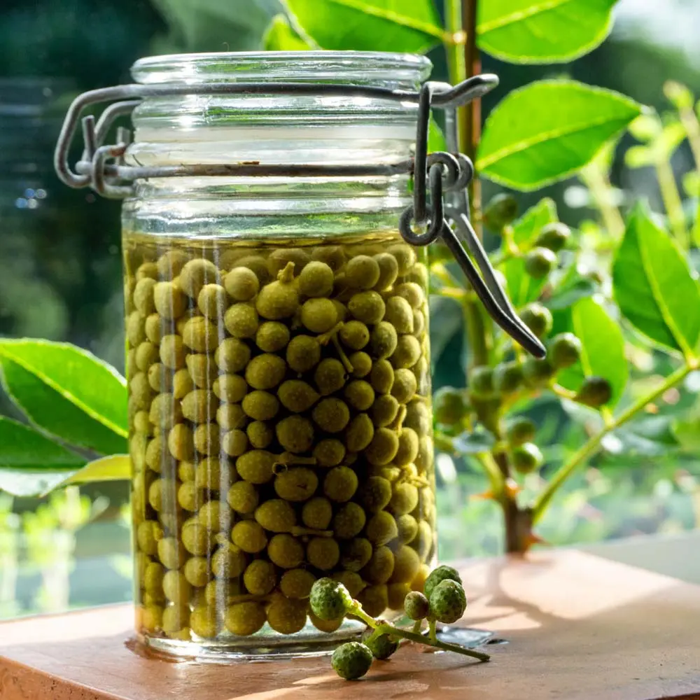 Neben dem Trocknen der reifen Szechuanbeeren, ist das Einlegen in Essig eine feine Methode, dieses leckere Gewürz zu konservieren. Die grünen unreifen Beeren sind weich und schmecken milder. Man kann die eingelegten Beeren ähnlich wie eingelegten Grünen Pfeffer verwenden.