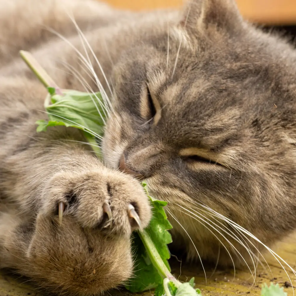 Katzen mögen ‘Wild Cat’ natürlich auch gerne. Wie unsere Gärtnereimiezi klar beweist, lohnt es sich, auf den Blättern herum zu kauen.