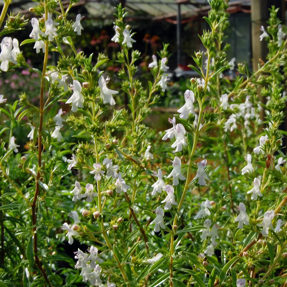 Die Pflanze hat einen leicht überhängenden Wuchs und möchte wie alle mediterranen Zwergsträucher in voller Sonne in durchlässigem Boden stehen. Die weiß bis rosa farbenen Blütchen erscheinen im Juni und Juli. Nach der Blüte die Pflanzen am besten etwas zurückschneiden, um einen buschigen Wuchs zu fördern.