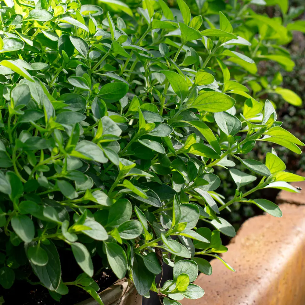 Zwergoregano ist ein sehr aromatischer Gewürzstrauch. Er wächst eher kriechend und bildet dichte Matten. Er erreicht eine Höhe von 20 cm. Er gehört zu den mediterranen Kräutern und möchte daher einen vollsonnigen Platz im Garten oder auf dem Balkon. Die Pflanze ist winterhart.