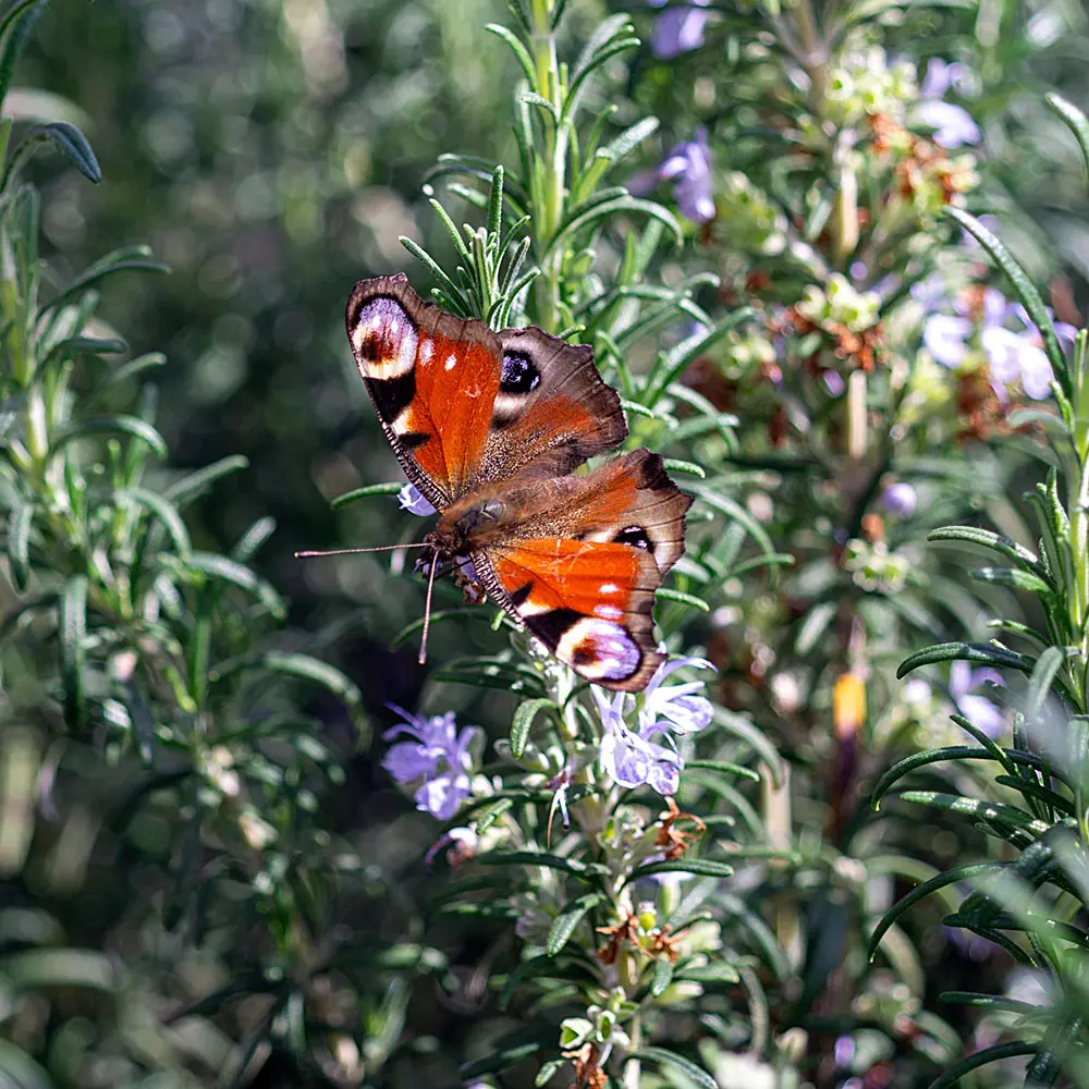 Rosmarin ‘Backnang’ ist eine deutsche Sorte aus der gleichnamigen Stadt in Baden-Württemberg und gut an das deutsche Klima angepasst. Er erträgt unsere feuchten Wintern problemlos.