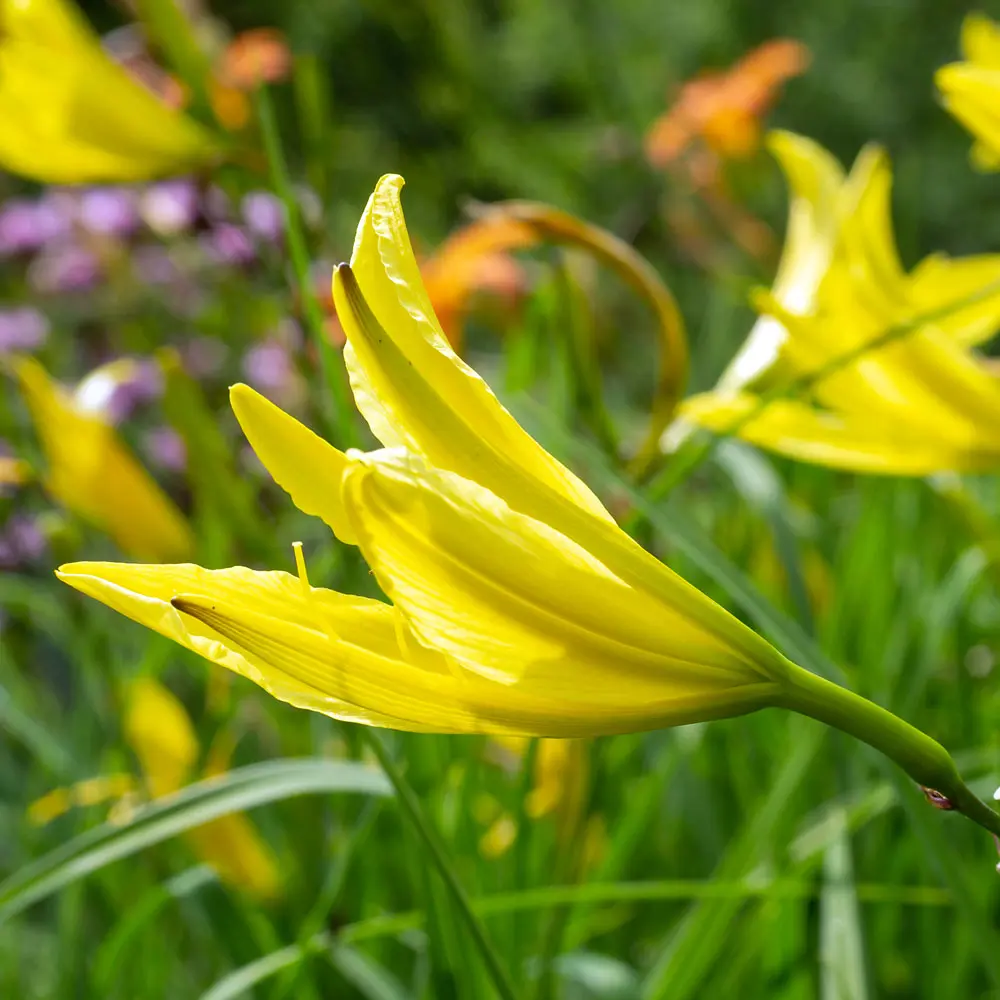 Die frühe Wiesentaglilie kommt aus Japan, dem östlichen China und Sibirien. Sie ist absolut winterhart und erträgt Temperaturen bis -35°C. Die gelben trichterförmigen Blüten erscheinen im Mai und blühen bis Ende Juni. Sie duften intensiv. Sie ist sehr gut mit anderen Taglilien kombinierbar, die später blühen.