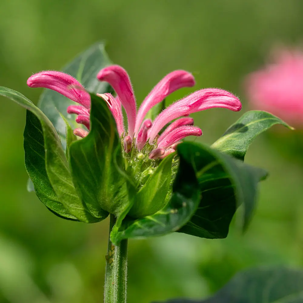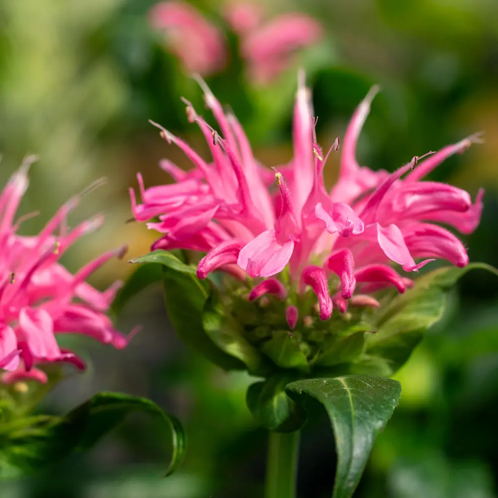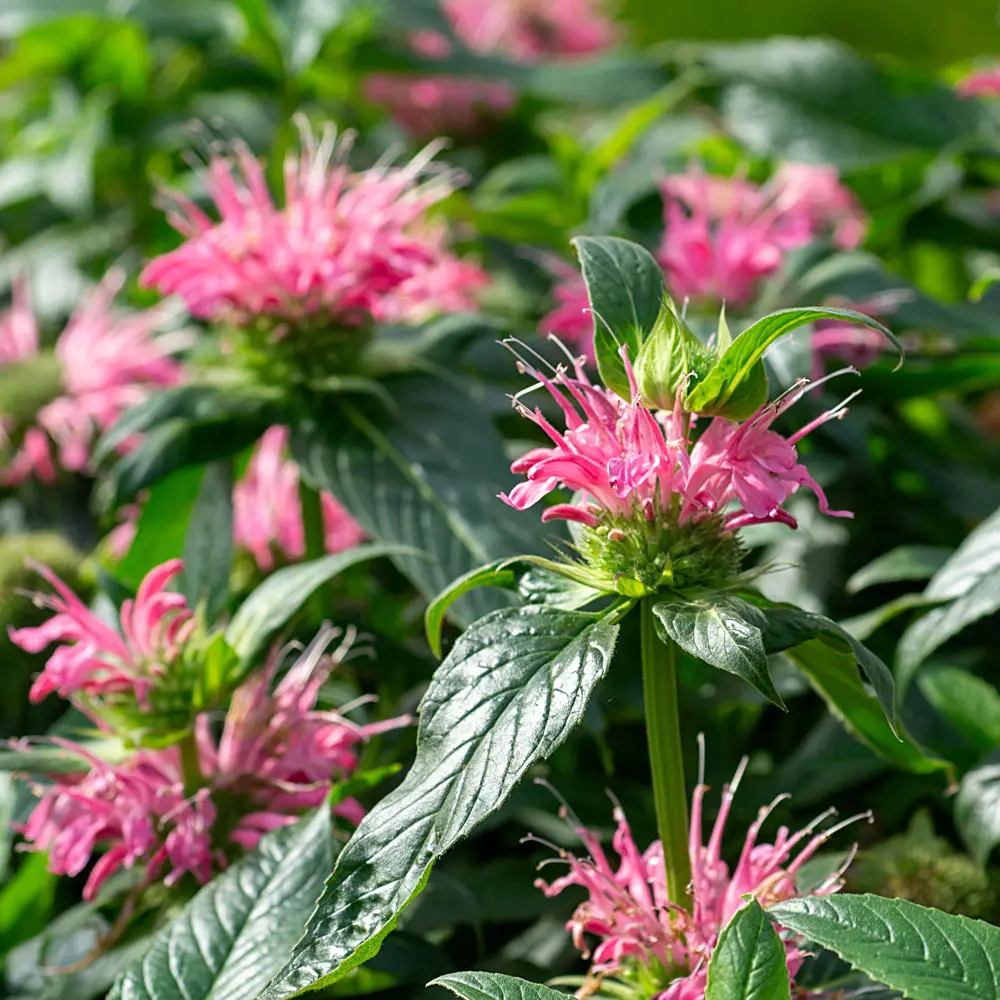 Eine Zwergmonarde mit auffallend pinkfarbenen Blüten.