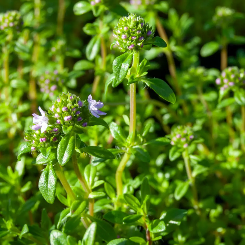 Ein herrliches Orangenaroma zeichnet diesen kriechenden Thymian aus. Er bildet einen dichten Teppich und mag einen vollsonnigen Standort.