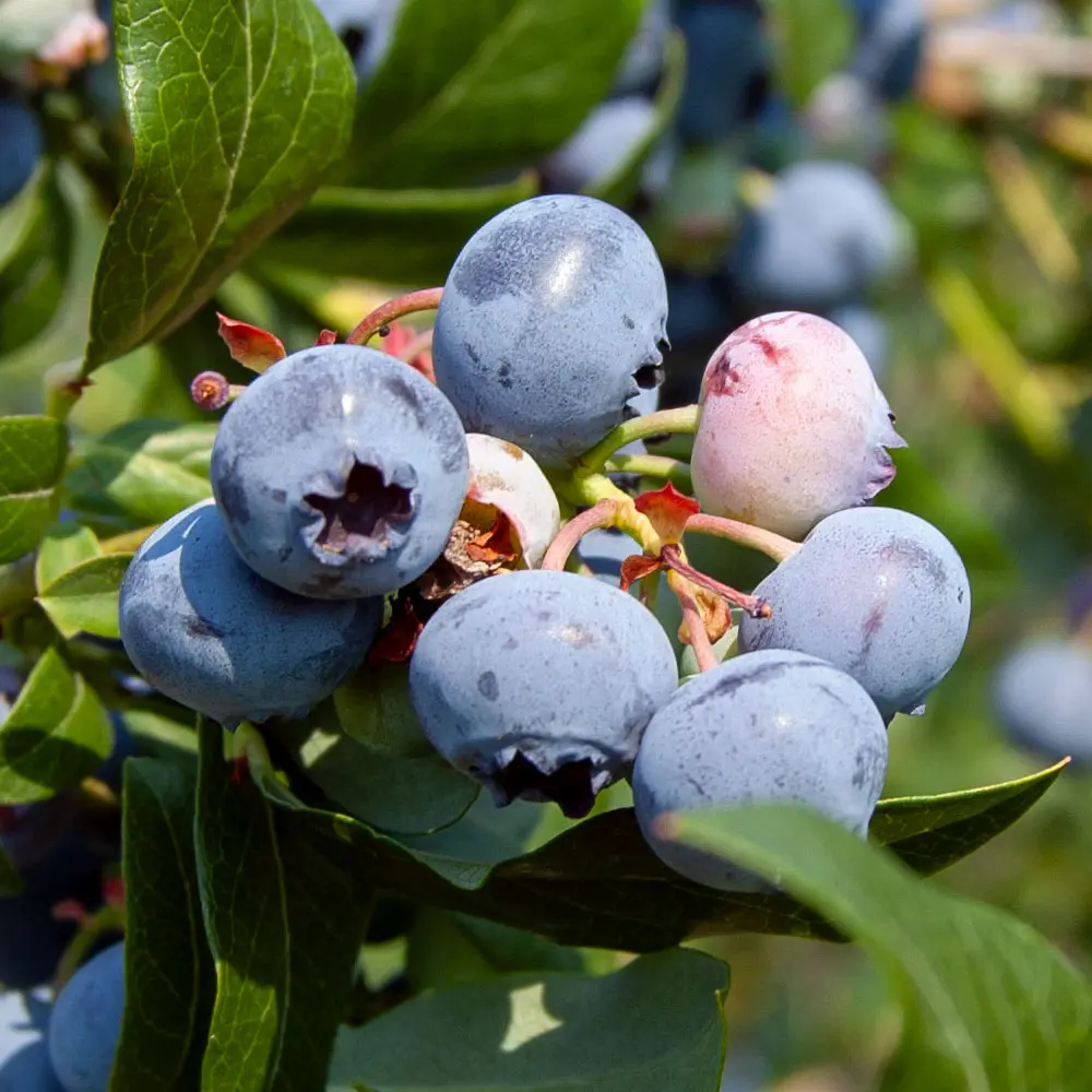 Die Früchte sind im Juli und August zu ernten. Die großen, dunkelblauen Früchte sind am leckersten, wenn man sie direkt vom Strauch nascht. Wenn noch etwas übrig beleibt, kann man Köstlichkeiten wie Blaubeermuffins, Eis mit heißen Blaubeeren, Marmeladen, Gelees, gedeckter Heidelbeerkuchen, Blaubeersorbet und vieles mehr basteln.