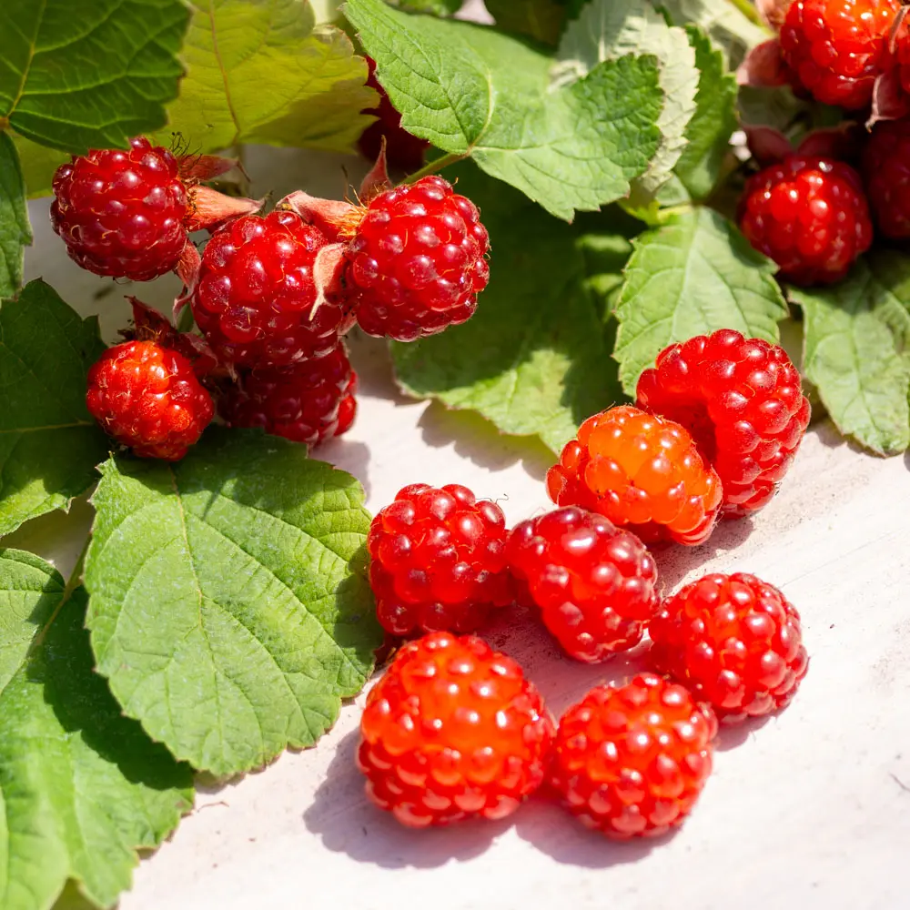 ‘Dorman Red’ ist eine Kreuzung zwischen der Weißen Zimtbeere und einer Kulturhimbeere. Geschmacklich ist sie einer Brombeere ähnlich, weshalb sie auch in manchen Gärtnereien als Rote Brombeere gehandelt wird.