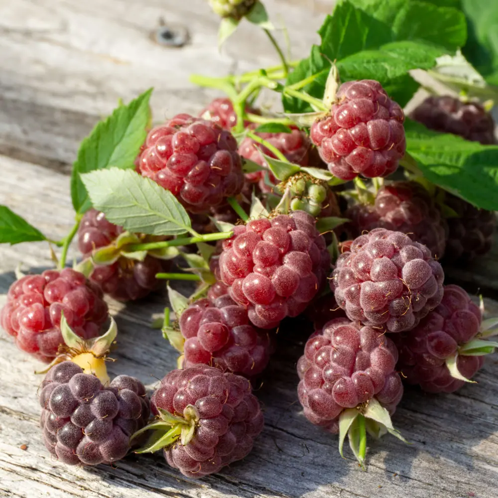 Diese Sorte ist eine Kreuzung aus einer schwarzen Himbeere und einer stachellosen roten Sorte und in Schottland entstanden. Leider ist sie bei uns immer noch nahezu unbekannt, obwohl sie alle Vorteile einer gesunden und schmackhaften Gartenhimbeere besitzt. Die violetten Früchte sind im August reif. Sie sitzen wie bei Himbeeren üblich am zweijährigen Holz. Die Pflanze ist ein Massenträger. Sie bildet nach und nach Früchte aus, so das sich die Erntezeit den ganzen August bis Anfang September hinzieht.