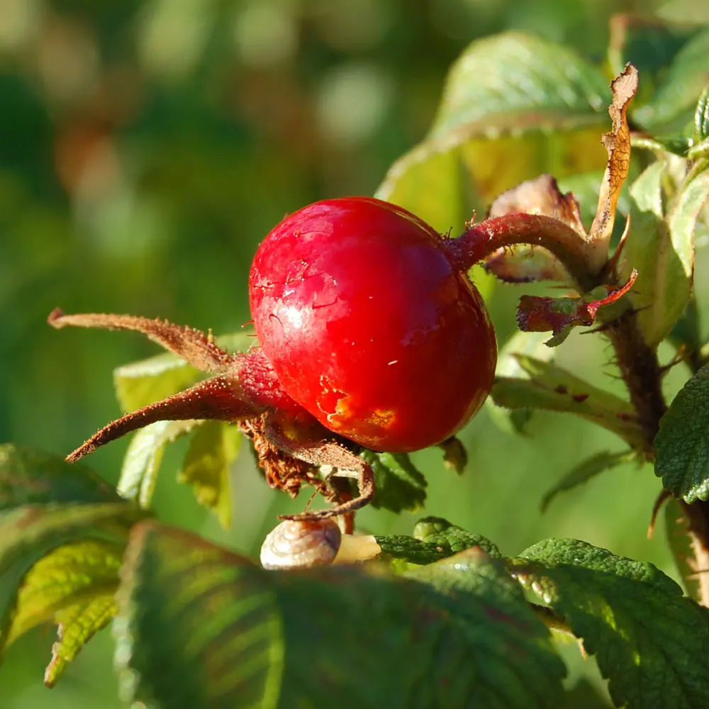 Die großen Hagebutten sind im Oktober reif zur Ernte. Sie enthalten viel Vitamin C und sind zu leckerem Hiffenmark zu verarbeiten.