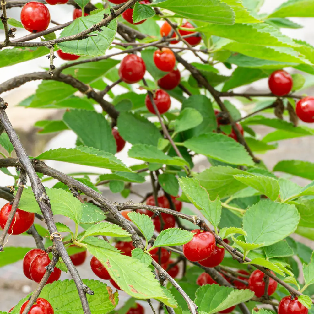 Man kann die Kirschen einfach so vom Strauch naschen. Die Früchte werden etwa 1,50 – 2,00 cm groß und sind geschmacklich der Sauerkirsche ähnlich. Sie können sehr gut zu Fruchtaufstrichen oder Gelees verarbeitet werden. Auch zu Creme-Desserts oder Eis sind sie sehr gut geeignet.