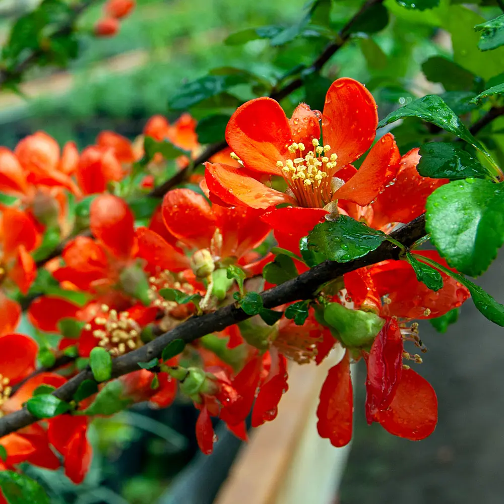 Die Scheinquitte ‘Friesdorfer Typ’ ist ein wunderschöner kleiner Strauch mit herrlichen rote Blüten und leckeren Früchten.