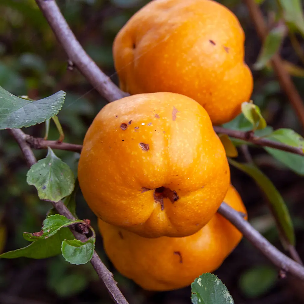 Ganz ähnlich wie die Nordische Strauchquitte ‘Cido’ bildet sie golfballgroße knallgelbe Früchte, die sehr lange am Strauch bleiben, obwohl das Laub sich bereits verabschiedet hat. Zu dem fast schwarzen Holz der Zweige sehen sie sehr dekorativ aus. Die Früchte sind wie Quitten zu verarbeiten. Idealerweise stellt man Saft oder Mus aus ihnen her. Sie eignen sich auch sehr gut für Gelees.