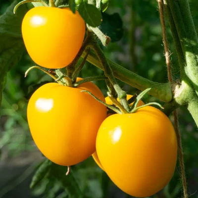 ‘Gelbes Birnchen’ ist eine Minitomate mit ausgeprägter Birnenform. Sie ist aromatisch und hat ein cremiges Fruchtfleisch.